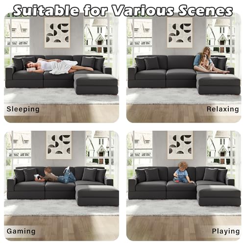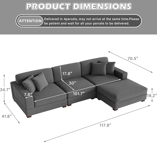 Specification: Modular Sectional Couches for Living Room, 118″ Modern Upholstered Sofa Couche with Ottoman for Living Room Bedroom, Grey