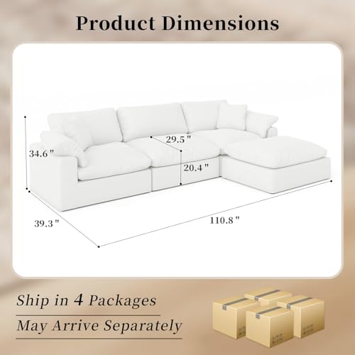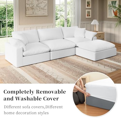 Specification: Modular Sectional Sofa Cloud Couch,Down Filled Comfy Cloud Modern Sofa,White Linen L Shape Oversized Couch Cushion Covers Removable Furniture for Living Room
