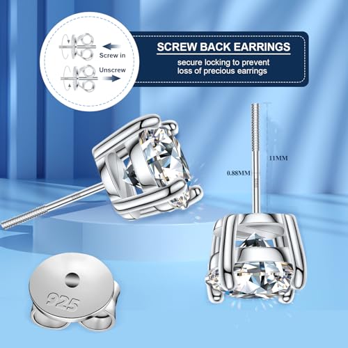 Specification: Moissanite Earrings Studs 0.2-8CT 18k White Yellow Gold Plated 925 Sterling Silver Hypoallergenic Lab Created Screw Back Moissanite Earrings for Men Women D Color VVS1 Round Earring Christmas Gifts