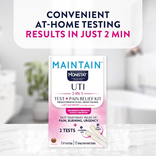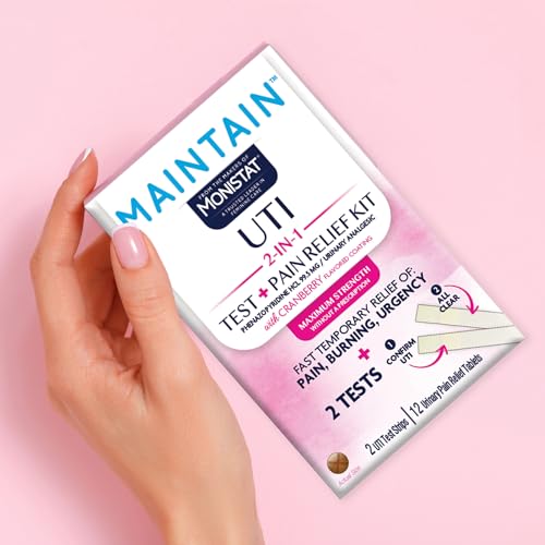 UTI TEST KIT: From the Makers of Monistat, Maintain UTI Relief Kit includes 2 urinary tract infection test strips and 12 maximum strength tablets