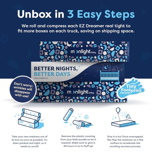 Specification: Moonlight Slumber EZ Dreamer Crib Mattress – Dual-Sided Baby and Toddler Mattress, Firm Infant Support, Waterproof and Hypoallergenic Cover, 4.5″ Foam, Standard Size, Made in USA