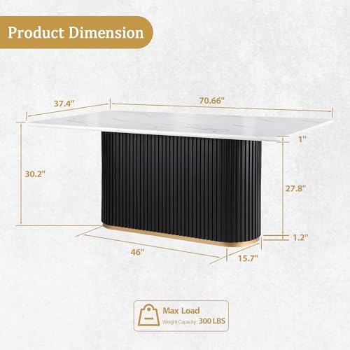 Specification: Morden Fort Modern Dining Table for 6, 70″ Faux Marble Dining Table with Black Fluted Base and White Rectangle Top for Ktichen, Reception and Conference