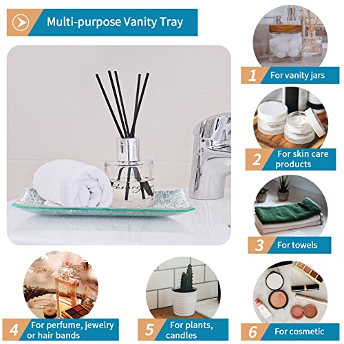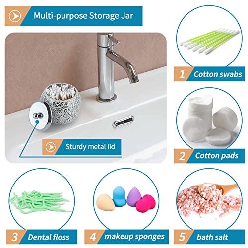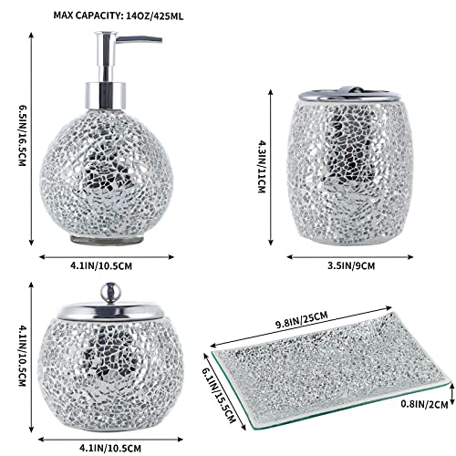 Specification: Mosaic Glass Bathroom Accessories Set, Modern Luxury Bath Ensemble, Includes Soap Dispenser & Cotton Swab Jar & Toothbrush Holder & Vanity Tray (Shiny Silver)
