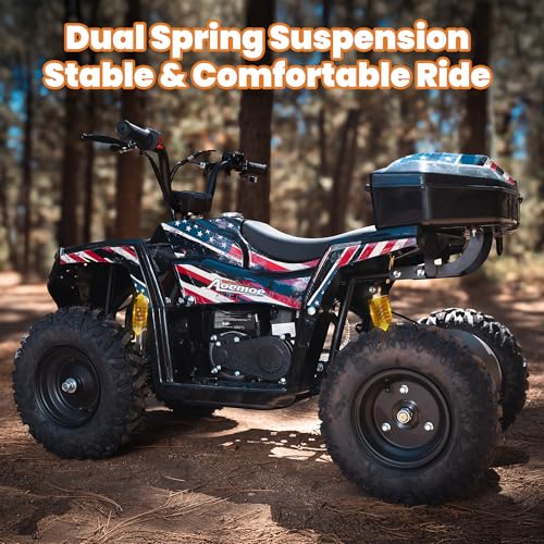 【Superior Off-Road Performance】Conquer backyards and trails with confidence! The full suspension system with front and rear shock absorbers, combined with knobby off-road tires, provides a smooth and stable ride on grass, dirt, and uneven terrain, just like a real full-size ATV.