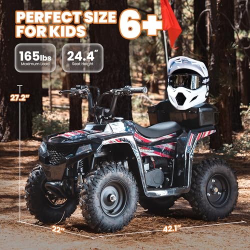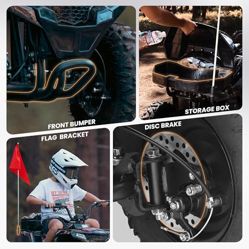 【Enhanced Safety for Peace of Mind】Designed specifically for young riders ages 6-12 (165 lbs max). This ATV is equipped with a responsive rear disc brake, an emergency kill switch, and a bright LED headlight for safer visibility. Always requires adult supervision and helmet protection (not included).