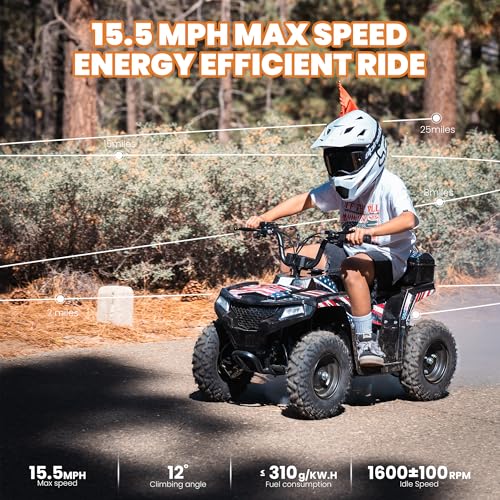 Specification: MOSTA 40CC 4-Stroke Gas-Powered ATV, 4 Wheeler Off-Road Dirt Quad for Kids, Max 15.5 MPH, Parental Speed Control with Storage Box, Easy Pull Start (Mixed-Flag)