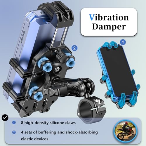 ![Motorcycle Phone Mount with Vibration Dampener & Secure Lock, [Size Adjustable] [Larger & Thicker Phones Friendly ] Handlebar Cellphone Holder for ATV Scooter for 5.7''-8.5'' Smartphone - Image 5](https://m.media-amazon.com/images/I/51R0WFOiF4L.jpg)