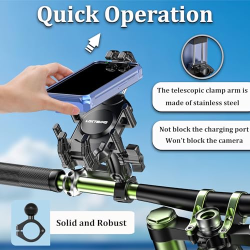 Quick Operation: The telescopic clamp arm is made of stainless steel, and the clamp width and height can be adjusted with one hand. The width and height of the scooter phone holder is adjusted for the first time to fit. In the future, you can truly enjoy one-hand quick installation and release.
