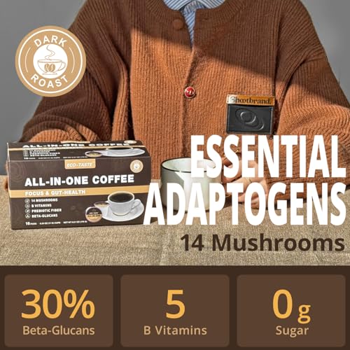Specification: Mushroom Coffee K Cup – Focus & Gut-Health with 14-Mushrooms, Vitamins, L-Theanine and Alpha GPC, Single Serve Pods – No Crash or Jitters, 16 Count
