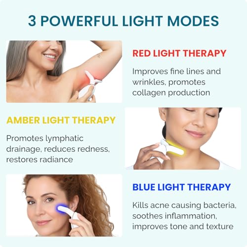AT HOME ARM, NECK, AND FACE TIGHTENING: The MyoGlow functions as a Lymphatic Drainage Massager Tool by using LED light, sonic vibration, thermal warmth to help reduce facial puffieness.