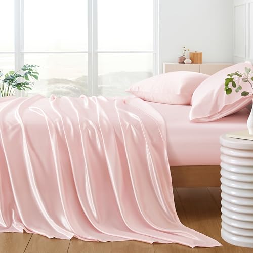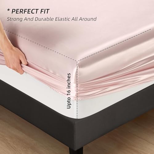 Specification: NA HommxJF 4PCS Blush Pink Satin Sheets Queen Size Silky Sheets Sets Lightweight Soft Bedding Sets with 1 Flat Sheet+1 Deep Pocket Fitted Sheet+2 Pillowcases (Blush Pink, Queen)