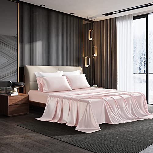 NA HommxJF 4PCS Blush Pink Satin Sheets Queen Size Silky Sheets Sets Lightweight Soft Bedding Sets with 1 Flat Sheet+1 Deep Pocket Fitted Sheet+2 Pillowcases (Blush Pink, Queen)
