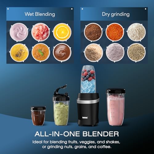 Specification: Nahida Blender for Smoothies, 1200W Smoothie Blender for Ices Crushing, Blenders with (2) 6-Fin Blades, Personal Blenders for Kitchen with 23oz, 32oz, 37oz Easy Go Cups for Juices, Black