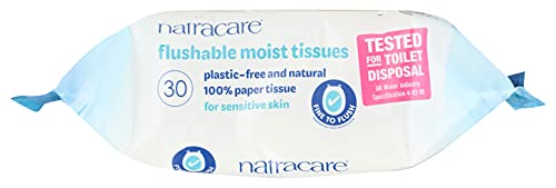 Specification: Natracare Safe to Flush Moist Tissues, Made of 100% paper and an Organic and Natural formula with Aloe Vera and Witch Hazel (1 Pack, 30 wipes total)