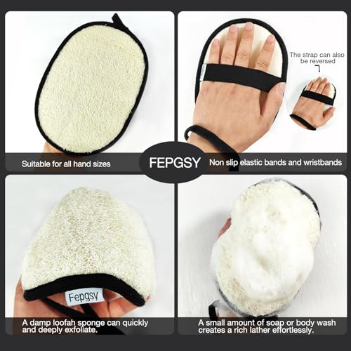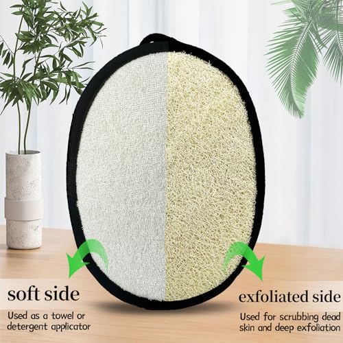 [Product Size]Loofah sponges are large 5.1-7 inch ovals,suitable for adult palm sizes,and the flexible loofah can be bent to fit the contours of your body,Ensures complete exfoliation and cleansing.