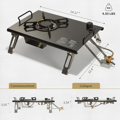 [UP TO 13652 BTU POWER] Our portable gas stove has 2 output power. When the fuel canister is inverted, the output power reaches 4000W/13652BTU. With the right position, the output power is about 2700W/9215BTU.