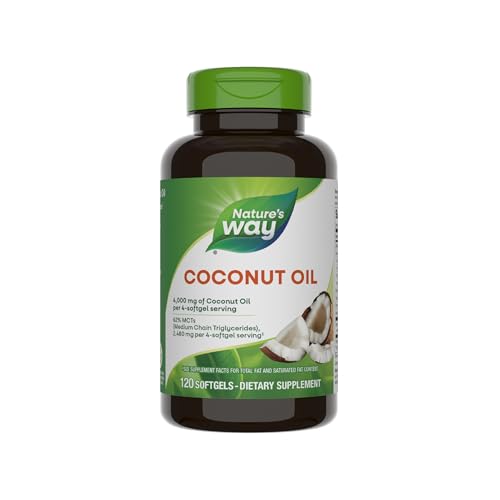 Nature’s Way Coconut Oil, 62% MCTs(1), Hexane Free, 120 Softgels (Packaging May Vary)