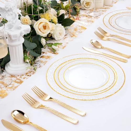 Perfect For Eevery Occasion: Perfect for weddings, birthdays, anniversaries, different celebrations and even for informal events and fancy picnics Made from premium BPA free plastic, these gold utensils look and feel as real polished hammered cutlery.