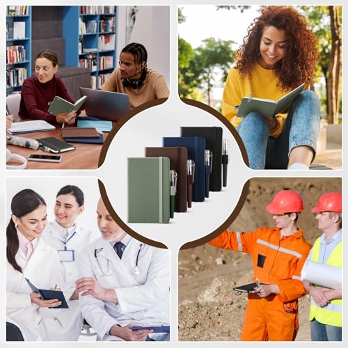 NETANY 4 Pack Small Notebook Pocket Notebook, A6 Mini Leather Hardcover Journal, 3.7″ X 5.7″, 416 Pages Note Pads, Black, Green, Brown, Blue
