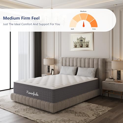 Specification: Neverfade 12 Inch Queen Mattress, Medium Firm Gel Memory Foam Hybrid Mattress, for Back Pain Relief, Pressure Relief for Side Sleepers