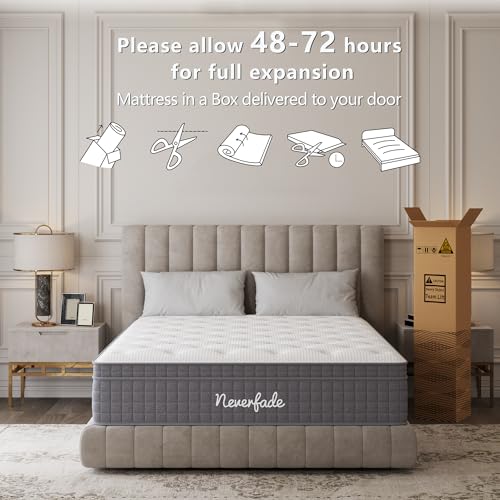 Neverfade 12 Inch Queen Mattress, Medium Firm Gel Memory Foam Hybrid Mattress, for Back Pain Relief, Pressure Relief for Side Sleepers