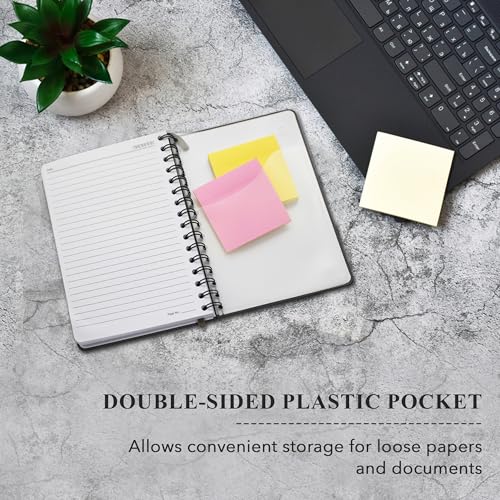 NOTE BOOK WITH POCKETS – Our thick paper journal spiral bound notebook is equipped with a double-sided plastic pocket, and lets you securely store important documents, notes, or loose papers excellent for both personal and professional use.