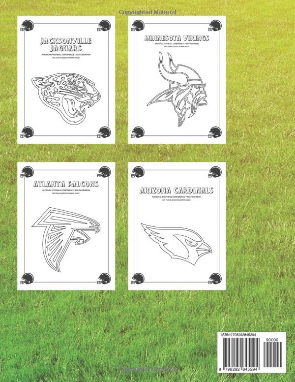 Specification: NFL Logos Coloring Book: 32 American Football Logos to Color with Interesting Trivia and Player-Friendly Designs Paperback – July 17, 2025