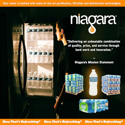 Specification: Niagara Purified Drinking Water – 16.9oz Bottles, 40 bottles per case 48 cases per pallet – Full Pallet – 1920 Bottles delivered by Waterpallets