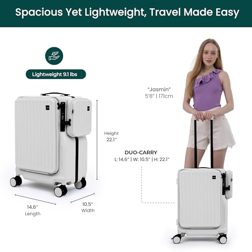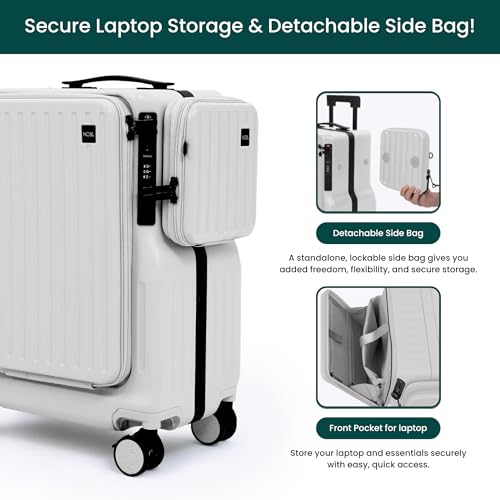 Specification: NOBL Duo Carry Carry-On Luggage with Detachable Side Bag, 22.1×14.6×10.5 Airline Approved, Noble Zipperless PC Hard Shell Suitcase & Crossbody, 360° Spinner Wheels, TSA Locks, USB Port – Ivory