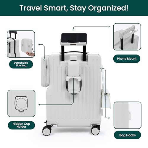 Smart Features for Effortless Travel: Stay organized and connected with a front laptop pocket, hidden cup holder, phone mount, and built-in USB & C charging ports (power bank sold separately). Everything you need is right where you want it.