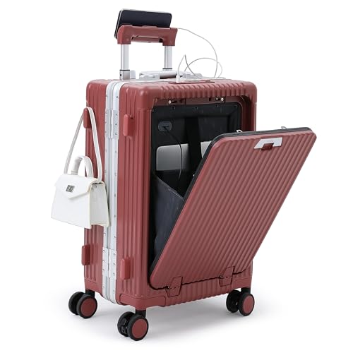 Specification: NOBL Travel Carry On Luggage, Noble Zipperless Aluminum Frame PC Hard Shell Suitcase, 22.5″x15″x9.5″ Airline Approved, 360° Spinner Wheels, TSA Lock, USB Charging Port, Cup & Phone Holder – Terracotta
