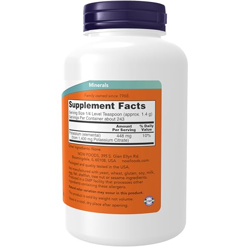 Specification: NOW Foods Supplements, Potassium Citrate Powder, Supports Electrolyte Balance and Normal pH*, Essential Mineral, 12-Ounce