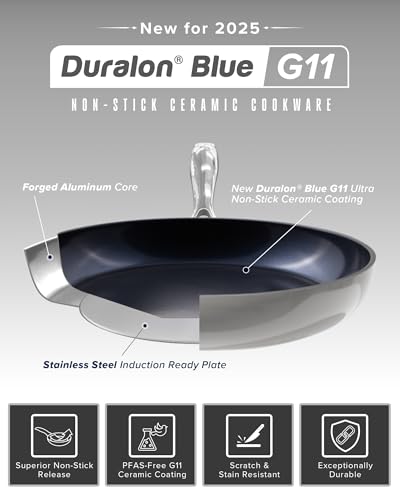 G11 Upgrade with Diamond-Level Hardness – Now enhanced with the new G11 Duralon Blue coating, this cookware offers 30% better nonstick performance than G10. Combined with a 9H hardness rating (just below diamond), it resists scratches, chips, and corrosion—keeping the nonstick surface intact for years of flawless performance.