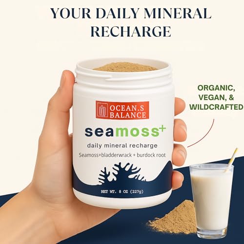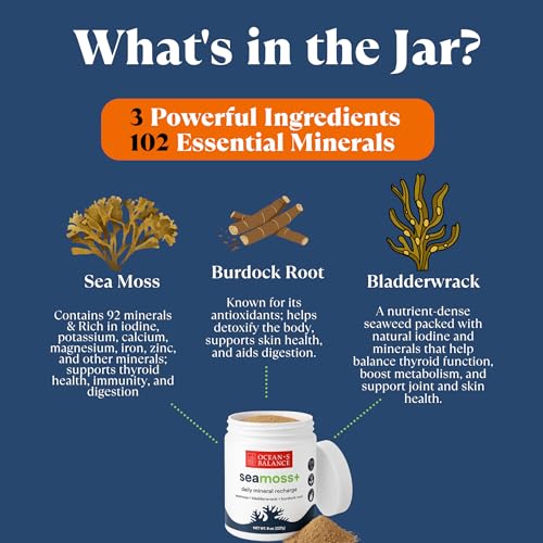 Specification: Ocean’s Balance SeaMoss+ Wellness Blend Powder – Organic Sea Moss, Bladderwrack & Burdock Root – 8oz – Wildcrafted Superfood – Thyroid Support, Healthy Skin, Detox & Joint Wellness