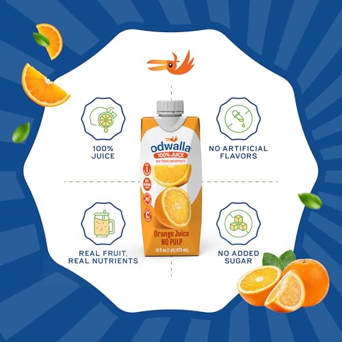 Odwalla Orange Juice, No Pulp – 100% Pure Orange Juice, Pulp Free – Vitamin C – No Added Sugar, No Artificial Ingredients, No Preservatives – 16 fl oz of OJ (12 Pack)