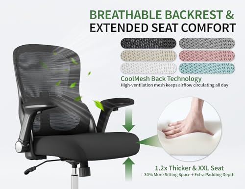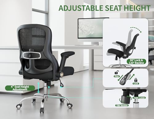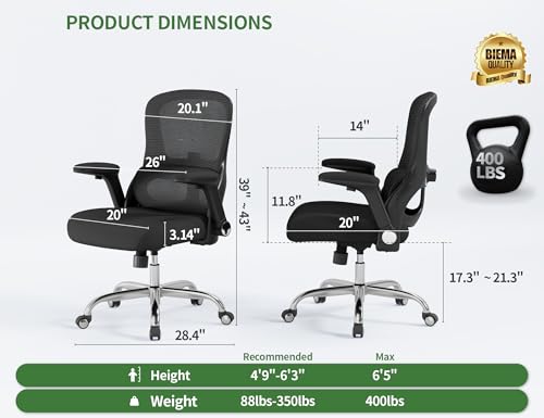 Specification: Office Chair Ergonomic Desk Chair Comfy: 400LBS Mesh Computer Chair Ergonomic Gaming Chairs with Wheels Adjustable Lumbar Support and Flip up Armrest-Swivel Executive Chairs Long Hours(Black)