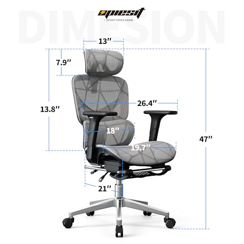 Specification: Office Chair with 3D Adjustable Lumbar Support,Ergonomic Computer Chair,Adjustable Headrest and Armrests, 400lbs Capacity,Tilt-Swivel,Premium Mesh Desk Chair for Office,Home & Gaming (Grey)