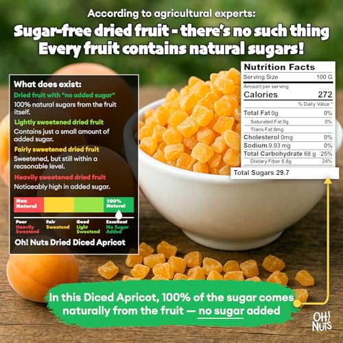 Specification: Oh! Nuts Dried Apricot – 1 lb – Dried Fruit Diced – No Sugar Added – Dehydrated Fruit Bites – Packed in New York Zip-Seal Bag for Exceptional Freshness