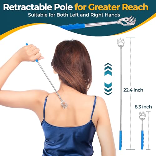 Telescoping Back Scratcher: Ohuhu scratchers extend from 8.3 inches to 22.4 inches. They meet the required length of the human back. effortlessly reaching your back, foot, head, and other spots you can’t reach. You no longer have to search for a friend or your wife to get that itch off your back
