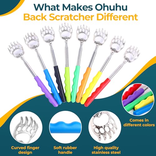 Ohuhu 8 Pack Back Scratcher Telescoping Backscratchers Extendable Back Scalp Scratchers Portable Massager Hand Bear Claw Massage Tool with Rubber Handles for Mother’s Father’s Day Christmas Gifts
