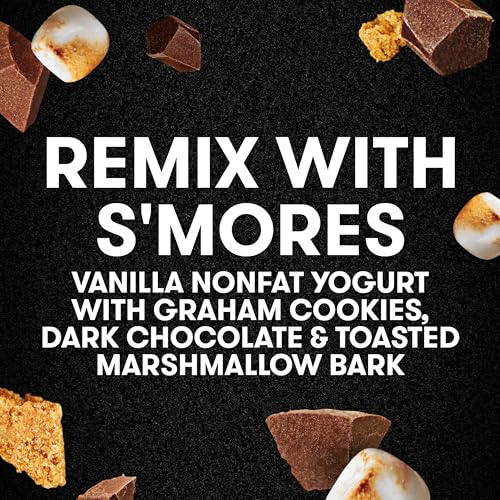 Oikos REMIX S’mores Vanilla Nonfat Greek Yogurt with Graham Cookies, Dark Chocolate and Toasted Marshmallow Bark Mix-Ins, Delicious High Protein Yogurt Snack With 11g of Protein, 4.5 OZ Cup