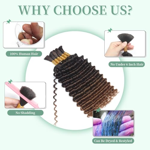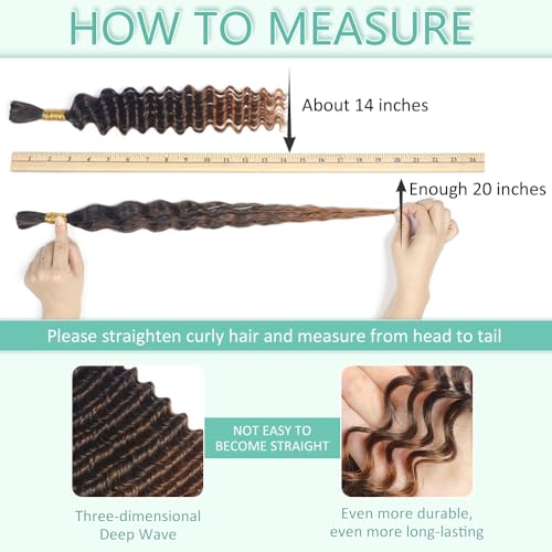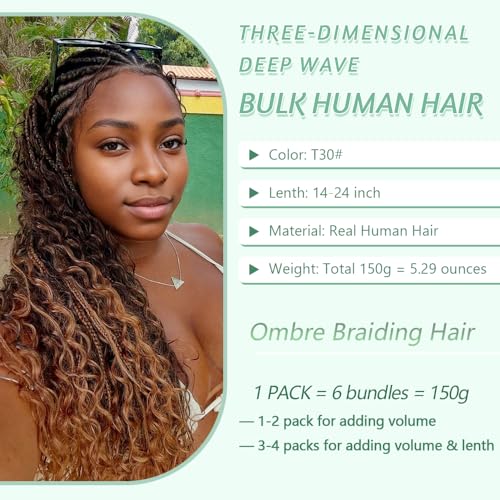 Specification: Ombre Braiding Hair 6 Bundles/Pack 150g 20 Inch Deep Wave Bulk Human Hair for Braiding 12A Boho Braids Human Hair Bundles Auburn Ginger T30# Boho Hair for Braiding Wet and Wavy Braiding Hair
