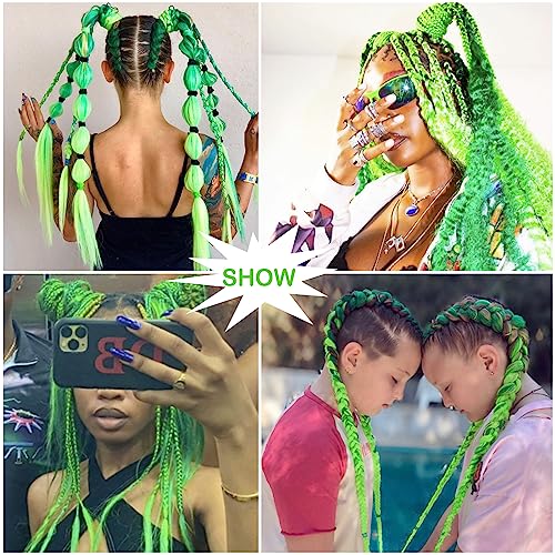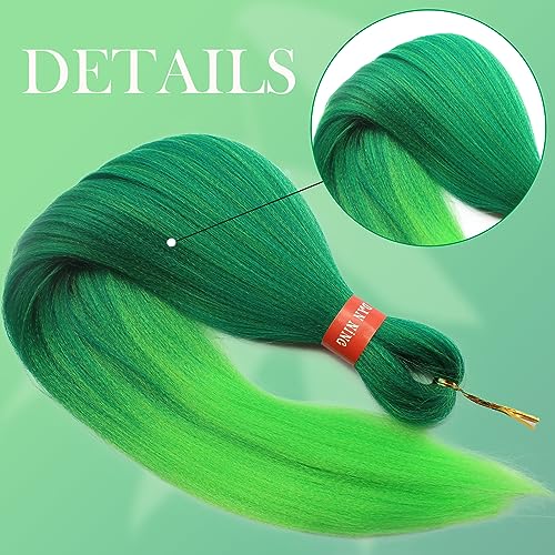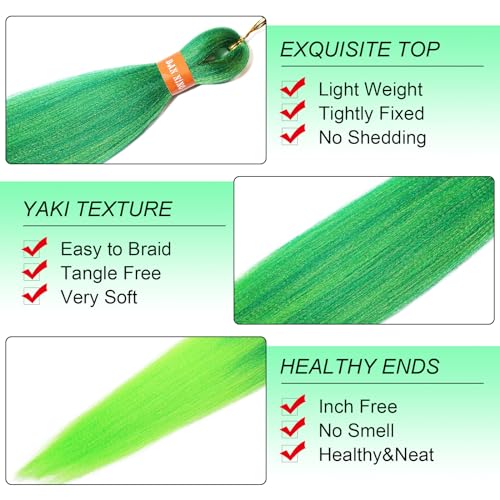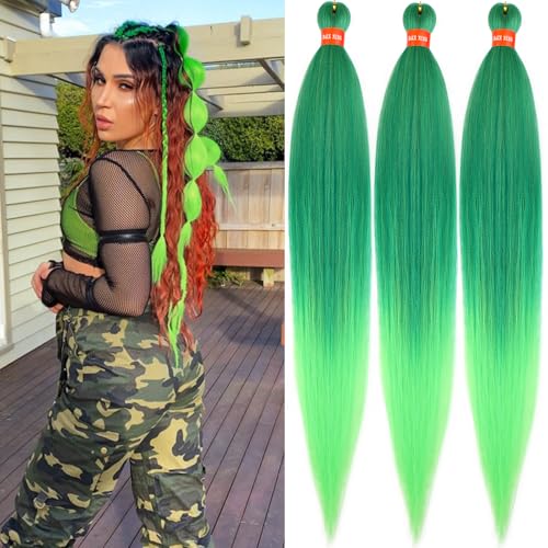Specification: Ombre Green Pre Stretched Braiding Hair 30 Inch Box Braid Hair Extensions 3 Packs Yaki Texture Pre Feathered Braids Hair