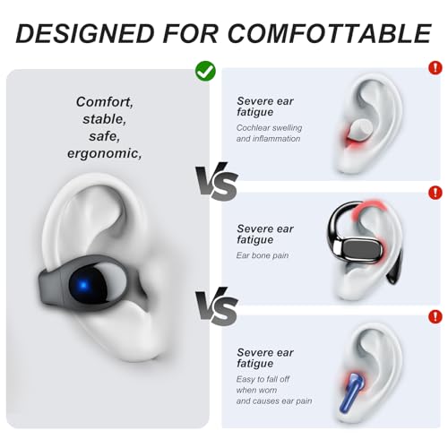 【Lightweight clip on earbuds design】Crafted with highly elastic materials, each earbud weighs only 5.7g for feather-light comfort. The secure clip-on fit stays in place during intense workouts—no slipping, no ear canal pressure, and zero discomfort of in-ear headphones. Perfect for running, gym sessions, or all-day wear without fatigue.