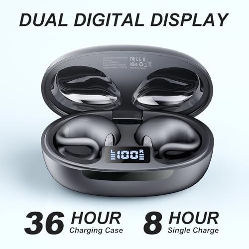 Specification: Open Ear Earbuds,Clip on Earbuds,Sport Bluetooth Headphones,with Dual Digital Display,IPX7 Waterproof Design ,44H Playtime,for Workouts and Running