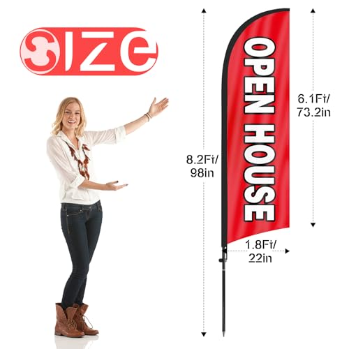 【Cost-Effective Advertising】The open house banner offer a cost-effective advertising solution compared to other traditional forms of outdoor advertising. This open house flag size is (8.2ft/98in) tall and (1.8ft/22in) wide, visible enough from far away, ensures your business stands out from the crowd, grabbing attention and increasing foot traffic.
