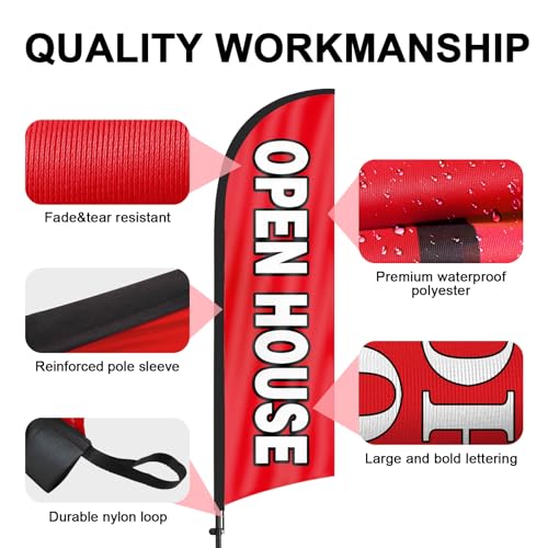 【Weather Resistance】These open house signs for real estate are designed to withstand various weather conditions, high-quality aluminum and fiberglass pole, tear resistant polyester fabric making it sturdy and heavy-duty to be held up well even in rain, snow, sleet and strong winds.