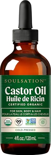 SoulSation Organic Castor Oil, 4oz – Certified Organic, Non-GMO Verified, EWG Verified, Cruelty-Free & Vegan