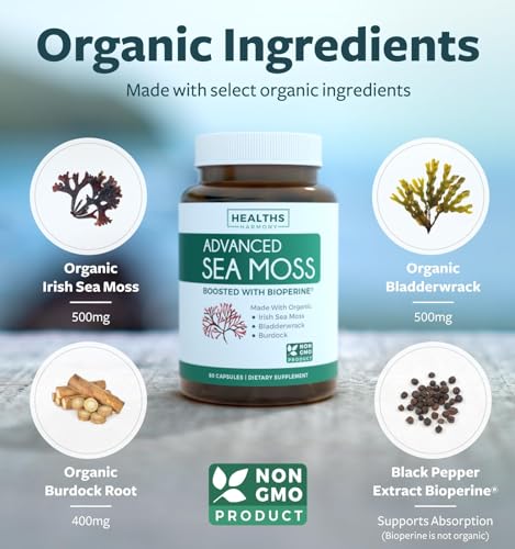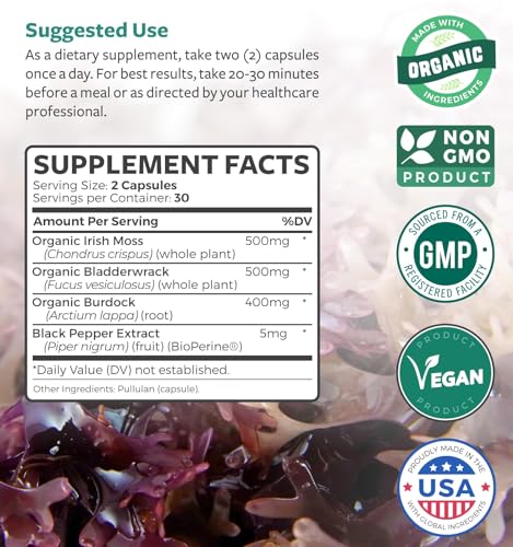 Specification: Organic Irish Sea Moss Capsules – Organic Sea Moss Capsules with Bladderwrack Burdock Root and Black Pepper Extract for Enhanced Absorption – Vegan Non-GMO & Made in The USA (1 Month Supply)