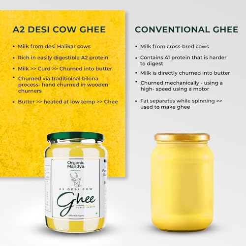 Specification: Organic Mandya – Grass Fed Ghee, Clarified Butter, Pasture Raised, Stress-Free Cattle, Lactose Free, Ethically Sourced | Fermented A2 Ghee (16 oz / 475 ml)